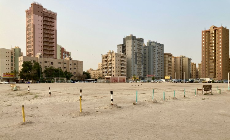 On a Friday morning in October, three weeks after my arrival, the dusty streets of Hawally were quiet. Tijae led me through an endless jam of parked cars past tall apartment buildings with ground floor laundries, baqalaas, tiny restaurants, bakeries, salons, and clusters of dumpsters. As we crossed a sand soccer field, and then a sand parking lot, Tijae speculated that the next neighborhood in our district, Maiden Hawally, would be newer and nicer than our own in Hawalli area.